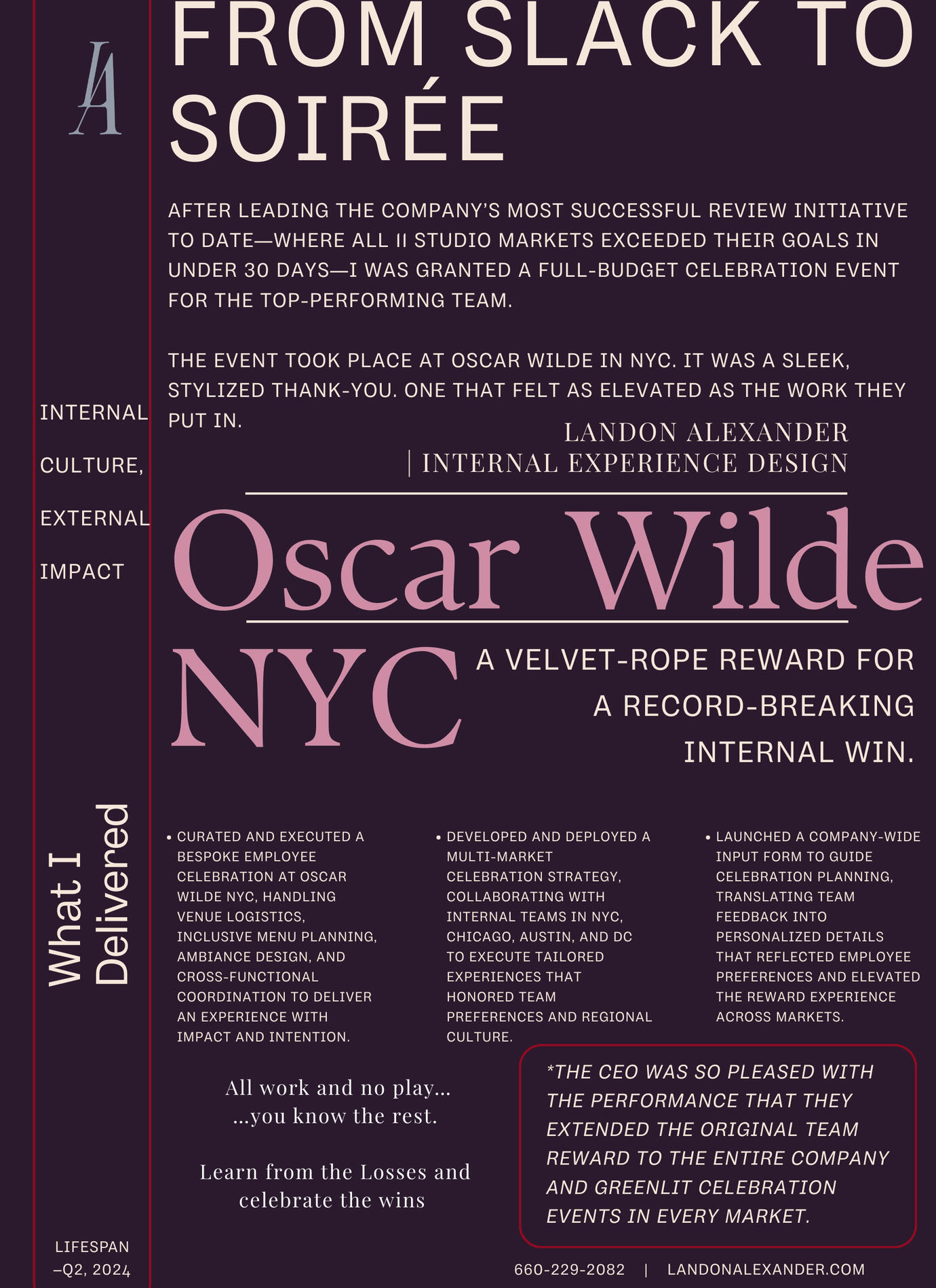 Transformed a top-performing team's celebration into a strategic, multi-market initiative that drove record-breaking results and strengthened cultural alignment.Highlights: